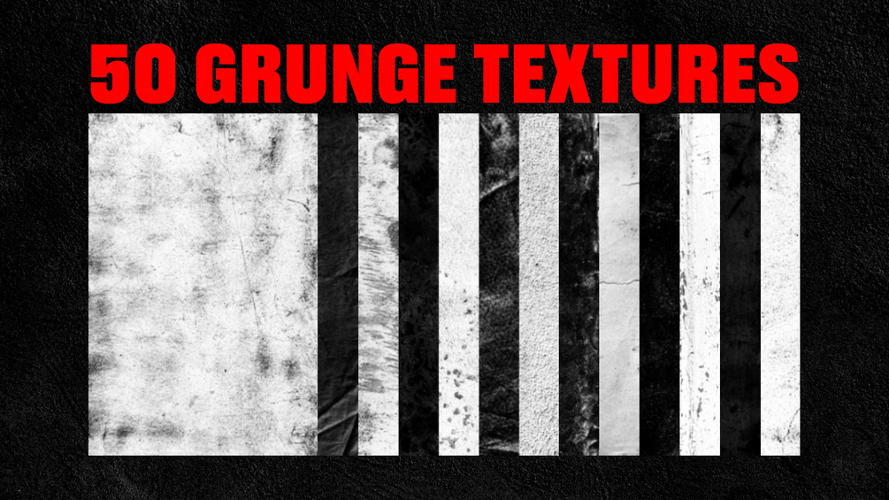 50 textures to use in your designs and give them a grunge style. All textures are original. The resolution is 2592 x 872 px 300 dpi